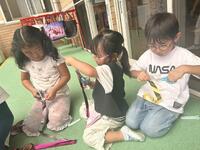 「これなーに?」「これでなにつくるの?」「これで、てるてるぼうずつくったことある!!」と興味を持ち始めました。