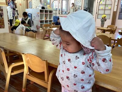 乳児クラスでは、「自分でやってみたい」「自分でやりたい」という