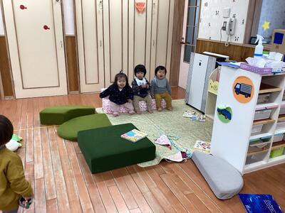絵本コーナーでは一緒に絵本を開いて笑い合う姿も