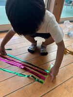 「これなーに?」「これでなにつくるの?」「これで、てるてるぼうずつくったことある!!」と興味を持ち始めました。