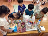 材料を並べていると、興味津々に近づく子どもたち! 先生が作る姿を真剣に見ています!!