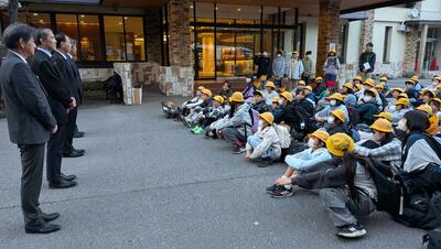 全員元気に学校に到着しました。帰校式を終えて解散となります。