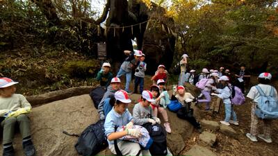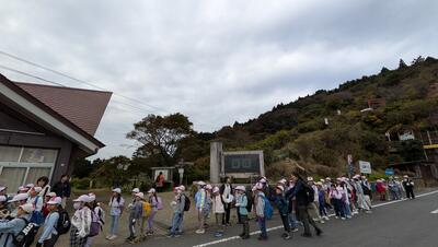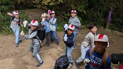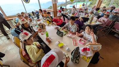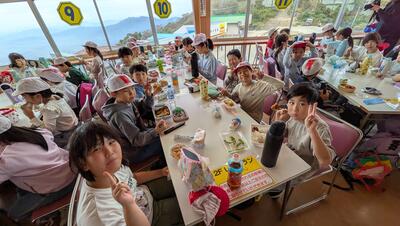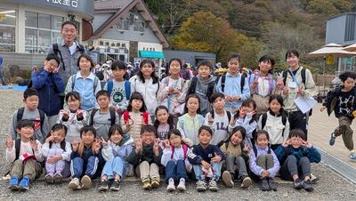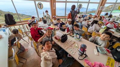 学校へ無事に到着しました。全員が参加して、全員が頂上まで登ることができました。3年生の皆さん、頑張りましたね。
