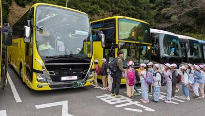 楽しかった修学旅行ももうすぐ終わりです。バスに乗って、中央小へ向かいます。学校が近くなりましたら、ご連絡いたします。
