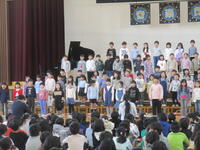全校朝会を行うときには、入場した学年から今月の歌を歌っています。