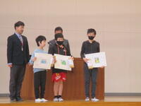 書き初め展で書生会賞となったお友達です。6年児童が代表で表彰されました。