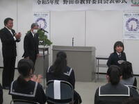 染谷教育長の挨拶の中では、本校の栁澤さんが、先日TBSテレビの「リトルエジソン」に出演したことが紹介されました。