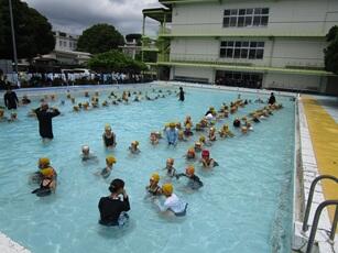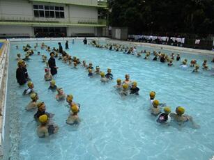 4年生が水泳学習を行いました。東京理科大学のお兄さんにお手本を見せてもらいながら、楽しく学習ができました。