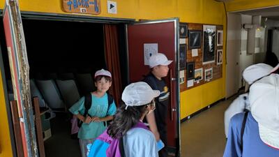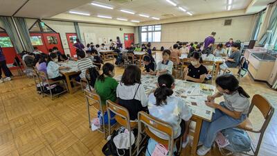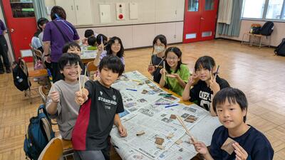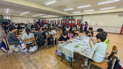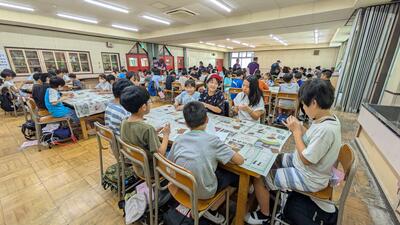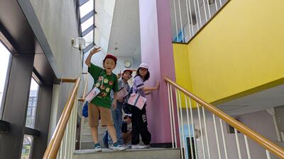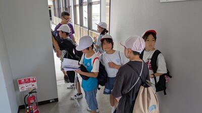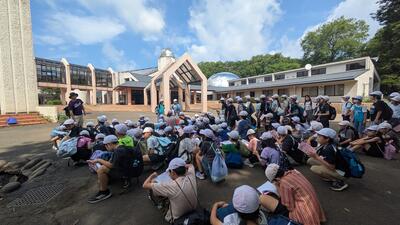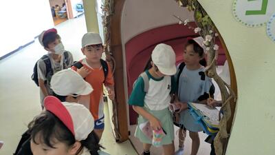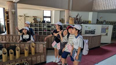館内でオリエンテーリングを行なっています。グループごとに協力して、館内に隠された星を探します。