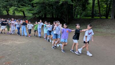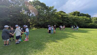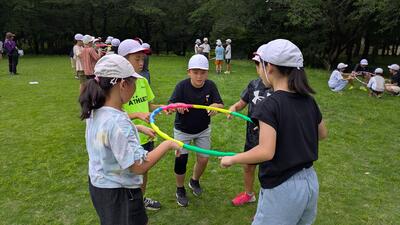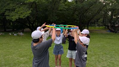 「ASE」という活動をします。これは、8~10人程度の小集団を設定し,野外の中で出された課題を話し合ったり,協力し合ったりしながら一人ではできないことをみんなで解決していく課題解決型の体験ゲームです。