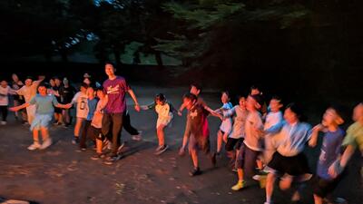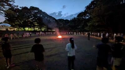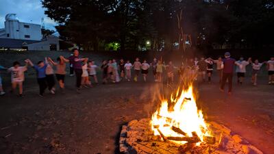 楽しみにしていたキャンプファイヤーです。歌って踊ってゲームして、楽しく過ごしました。