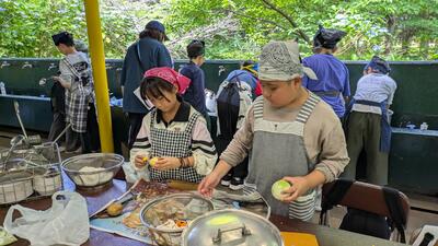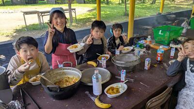 今日のメインの活動「カレーづくり」です。みんなで力を合わせて、おいしいカレーをつくりましょう。