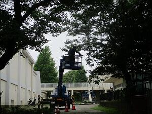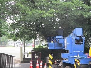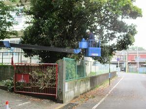 今月、業者に依頼して裏校庭側通用門(赤門)まわりの樹木剪定を行いました。