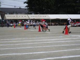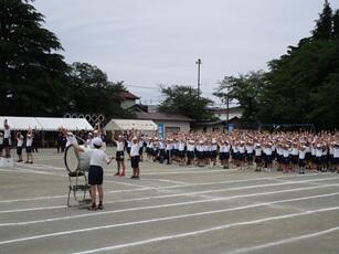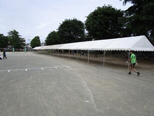 今年から入れ替えなしで、全学年そろっての運動会となります。熱中症対策のため、近隣の学校からテントをお借りして、応援席全席にテントを設置しました。気温の高い中でしたが、どの学年も一生懸命取り組めました。