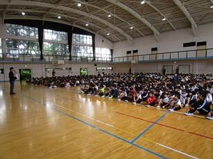 6月4日(水)に開催予定の「野田市小学校陸上競技大会」に向けて、陸上選手を励ます会を行いました。大会で練習してきた力を発揮できるように、全校でエールを送りました。選手の皆さん、がんばってください。
