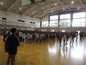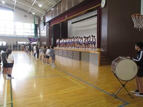 応援席や開閉会式の位置の確認を中心に行いました。みなさん集中して取り組めましたので、短時間で終わることができました。