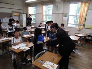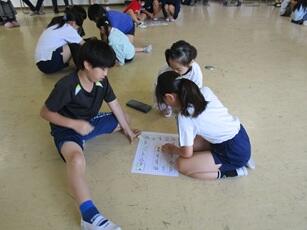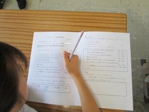 「今、いじめられていると感じていますか?」「いじめを見たり聞いたりしたとがありますか?」「悩みや相談したいことはありませんか?」等の質問をしました。アンケートに答えにくい児童は、話しやすい先生や手紙での相談もできることを伝えました。