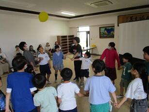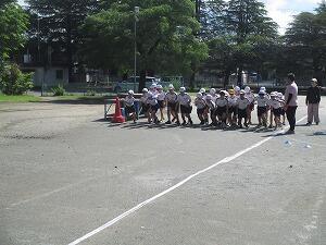 3・4年生の台風の目、4人で力を合わせて上手に動けていました。