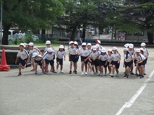 明日は、予行練習を予定しております。リュックで登校し、水筒の中身を多めに、汗拭きタオルや必要に応じて着替えを持たせるようにお願いします。