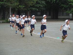 本校では、体育の学習との関連や年間をとおした体力づくりに考慮して、昨年度より記録測定による「持久走記録会」として実施しています。