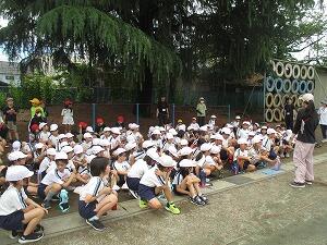 6月の全校朝会を行いました。今月の生活目標は、「誰にでも進んであいさつをしよう」です。お友達や先生だけでなく、地域でお世話になっている方にも、自分からあいさつができるようにがんばりましょう。