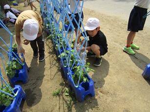 市内で野菜種子の開発・生産・販売等を行っている「渡辺農事株式会社」さんの全面協力により、2年生が野菜の苗植え体験を行いました。