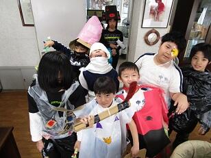 今日は、ハロウィン。いろいろな手作り衣装で変装した「くすのき・しいのみ」の皆さんが、校長室へ遊びに来てくれました。