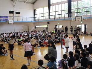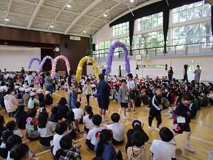 5月の全校朝会を行いました。中央小では、体育館に入場した学級から今月の歌(つばさをください)を歌い始めます。全校児童が集まるころには、きれいな歌声が響き渡ります。