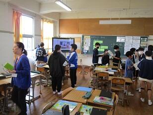 6年生の英語では、話す言葉を整理していろいろな人に自己紹介をする練習をしていました。