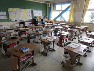 1・2年生の教室は運動会練習で誰もいませんでしたが、教室はスッキリと整理整頓されていました。