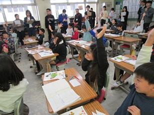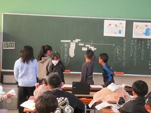 3年4組で授業研究会を行いました。若年層の職員は、各自の授業力を向上させるために日々研修に励んでいます。特に経験5年以下の職員は、全職員に授業を参観してもらい、様々なアドバイスを受けてよりよい授業となるように研修を重ねています。