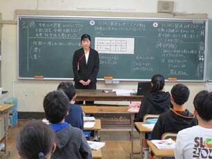10月14日から教育実習を行っていた実習生が、本実習のまとめの授業を行いました。約1ヶ月間、一緒に過ごした4年1組の皆さんは、先生の一つ一つの質問に一生懸命に答えていました。将来一緒にお仕事できる日を楽しみにしています。ご苦労様でした。