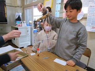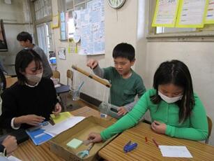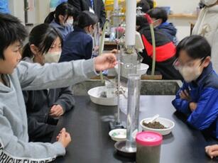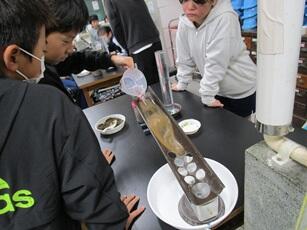 6年生が「わくわく理科実験教室(東京理科大学とのパートナーシップ協定による体験教室)」に参加しました。東京理科大学野田キャンパス教養部の関教授から、様々な大きさや重さの粒が水中を沈むときの速さ比べや、土砂が水中を繰り返し沈む様子の観察を通して、地層のでき方について大変わかりやすく教えていただきました。ありがとうございました。