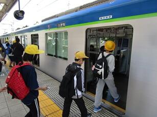 全体を二つのグループに分けて、行きは「まめバス」を使いこども館へ、帰りは「東武アーバンパークライン」で学校へ戻りました。(もう一つのグループは、行きが電車で帰りにバスを利用)