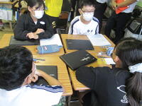 途中の作戦会議では、うまくいった点、うまくいかなかった点をみんなで話し合いました。
