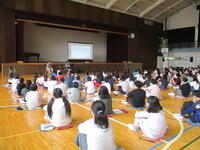 もう一つお話をします。この夏休みを使って学校の理科室、音楽室、図工室などの特別教室や職員室、事務室の床をきれいに張り直しました。きれいになった教室をそして伝統のある教室や廊下を大切に使ってくださいね。よろしくお願いします。