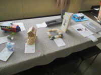 まず、縄文時代の生活について土器や石器等の出土品を見せながら説明してくださいました。