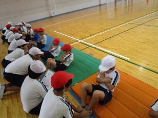 今週は学年ごとに「体力テスト」を実施します。今日は、5年生にお手伝いしてもらいながら2年生が実施しました。
