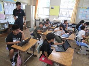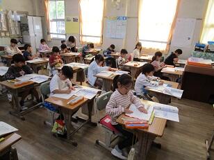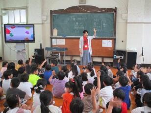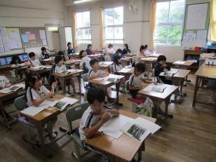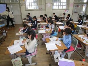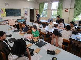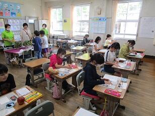 若年層の職員研修のため、市内の他の小学校の先生が、3年生と4年生の学級で研修を行いました。