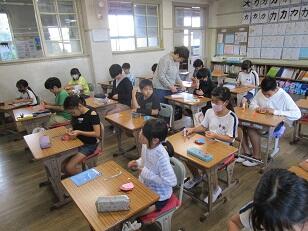 今日は、1年生のクラスでも子どもたちが制作に励んでいました。