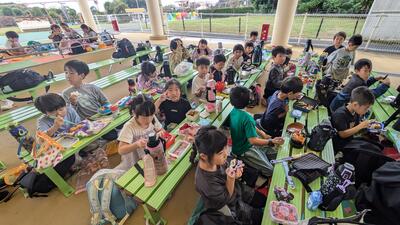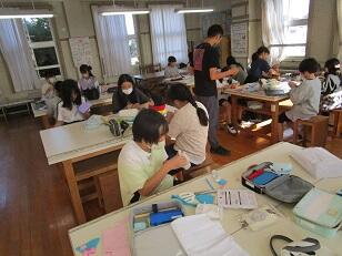 第一中学校と清水台小学校のお友達と、1年生から4年生はレクリエーションを、5・6年生は中学生と調理実習をして楽しく過ごしました。