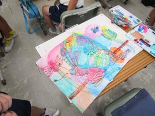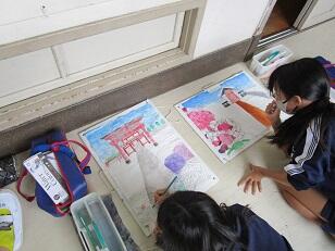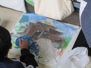 各学級や学年でテーマを決めて、大きな画用紙に思いっきり描いています。