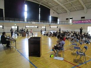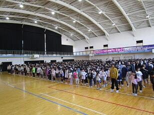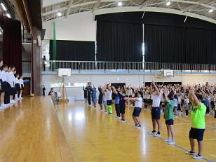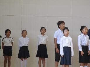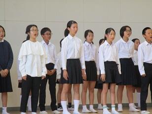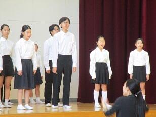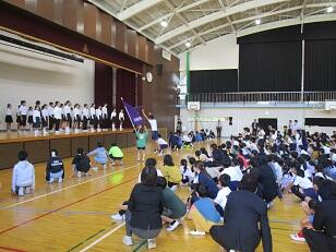 今月の歌「Let's search for tomorrow」を全校で合唱しました。美しい歌声が体育館に響き渡りました。
