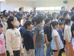 全校で今月の歌「ビリーブ」を合唱しました。