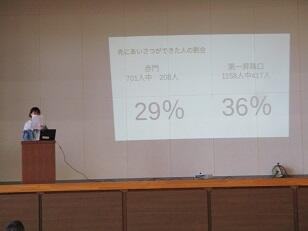 生活委員から「あいさつ」について、整備委員から「ゴミの分別」について発表がありました。