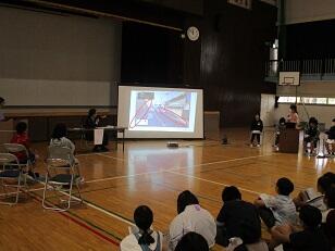 校庭に移動して、全校児童が「株式会社ワーサル」さんによる交通安全教室に参加しました。