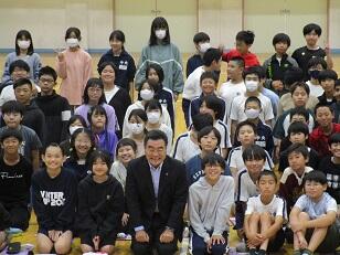 朝会の後、今月17日に行われる「市民駅伝大会」に出場する選手の皆さんを励ます会を行いました。