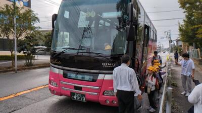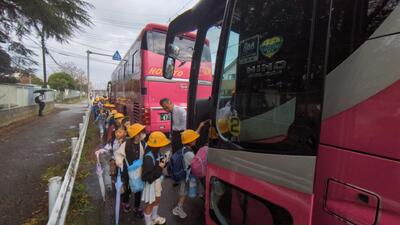 これからバスに乗って、学校へ戻ります。