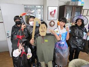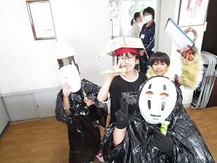 今日は、ハロウィン。いろいろな手作り衣装で変装した「くすのき・しいのみ」の皆さんが、校長室へ遊びに来てくれました。