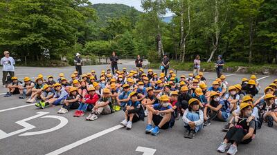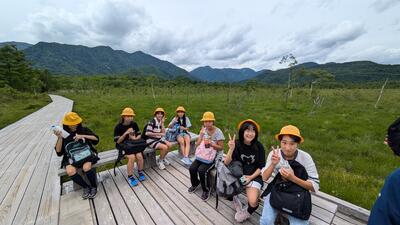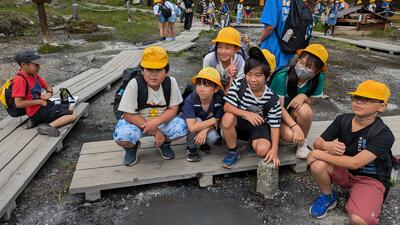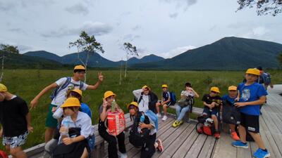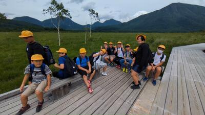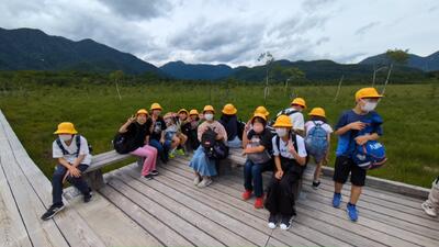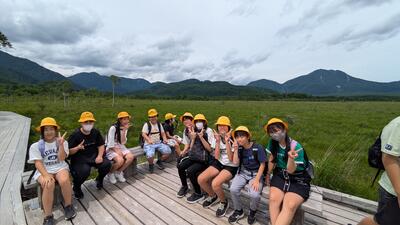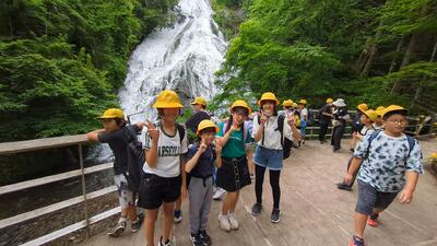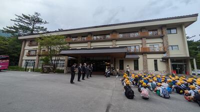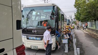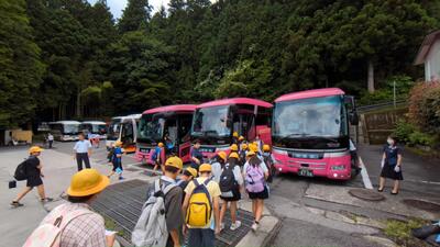 楽しかった修学旅行ももうすぐ終わりです。バスに乗って、杉並木を通ってから、中央小へ向かいます。学校が近くなりましたら、ご連絡いたします。